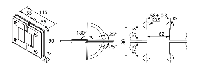 180°双边斜边浴室夹-PA视讯五金科技(广东)有限公司